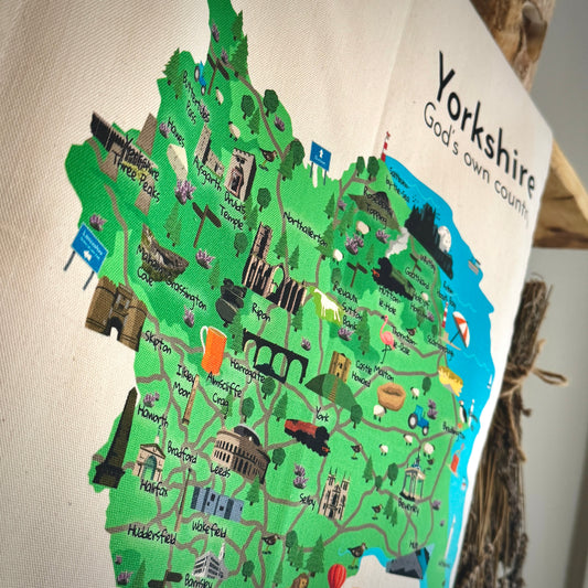 Yorkshire Map Illustrated Tea Towel
