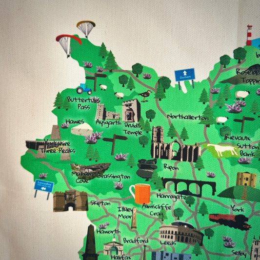Yorkshire Map Illustrated Tea Towel